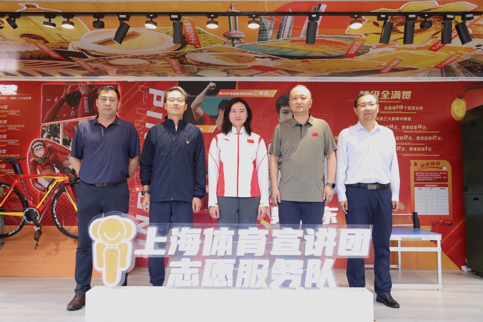 肖朱皓带领在场师生参观了“红色立方体”集装箱展陈。“红色立方体”展出了上海体育健儿获得的荣誉、成长历程和珍贵展品,并设有互动区域,供同学们亲身体验自行车与乒乓球运动的魅力,同时可以通过声音邮箱表达对体育健儿们的祝福。据悉,本站红色立方体将在我校进行为期一周的展陈。