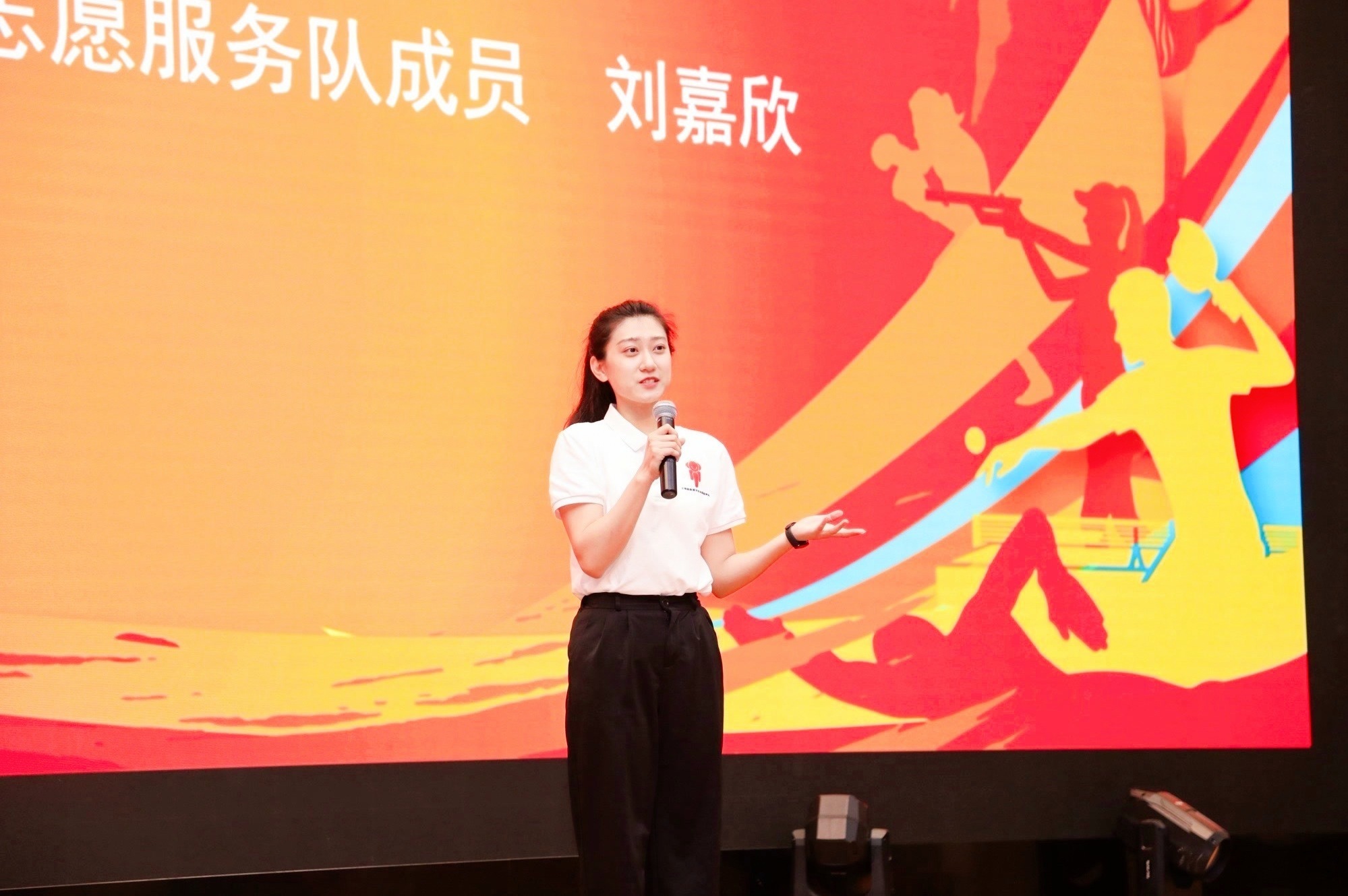 活动现场,上海体育宣讲团志愿服务队成员刘嘉欣以“‘吴愉’伦比 ‘拳’力一击”为主题作宣讲,为同学们带来了巴黎奥运会拳击冠军吴愉的体育励志故事。
