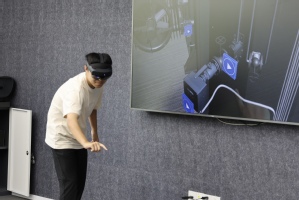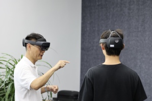 最令学生惊叹的是VR虚拟现实技术体验环节。戴上特制眼镜后,变压器内部精密结构以三维动态形式清晰呈现,通过VR透视技术,虚拟参观变压器及有载开关的设备内部结构,这种沉浸式教学方式,将抽象理论转化为直观认知,充分展现了MR在技术科普领域的创新探索。