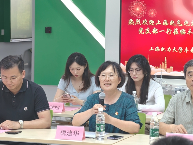魏建华对上海电气电站工程公司设计公司党支部一行的到来表示欢迎,并围绕学校、学院基本情况作简要介绍。她讲到,此次共建是落实新时代党的建设总要求、推动党建与业务深度融合的创新实践,期待双方进一步推动组织共建、加强资源共享、实现合作共进,把共建成果体现在改革创新、业务发展、队伍建设、人才培养、社会责任等各个方面,为服务国家“双碳”目标和地方经济社会发展注入强劲动能。