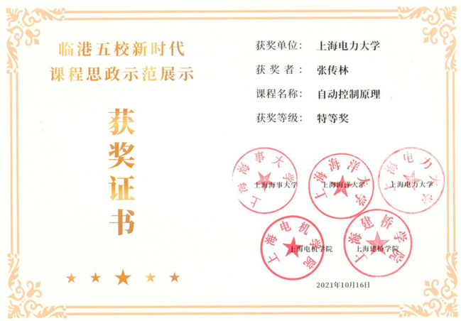 团队负责人牵头的《自动控制原理》课程获评国家级一流本科课程、上海市课程思政示范课程;团队成员获评上海市教学成果奖一等奖、上海市课程思政教学名师等,并斩获多项课程思政示范成果奖项。