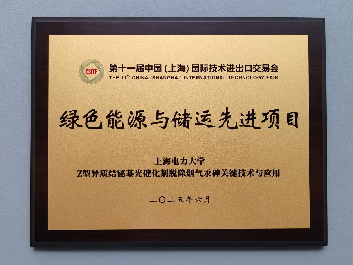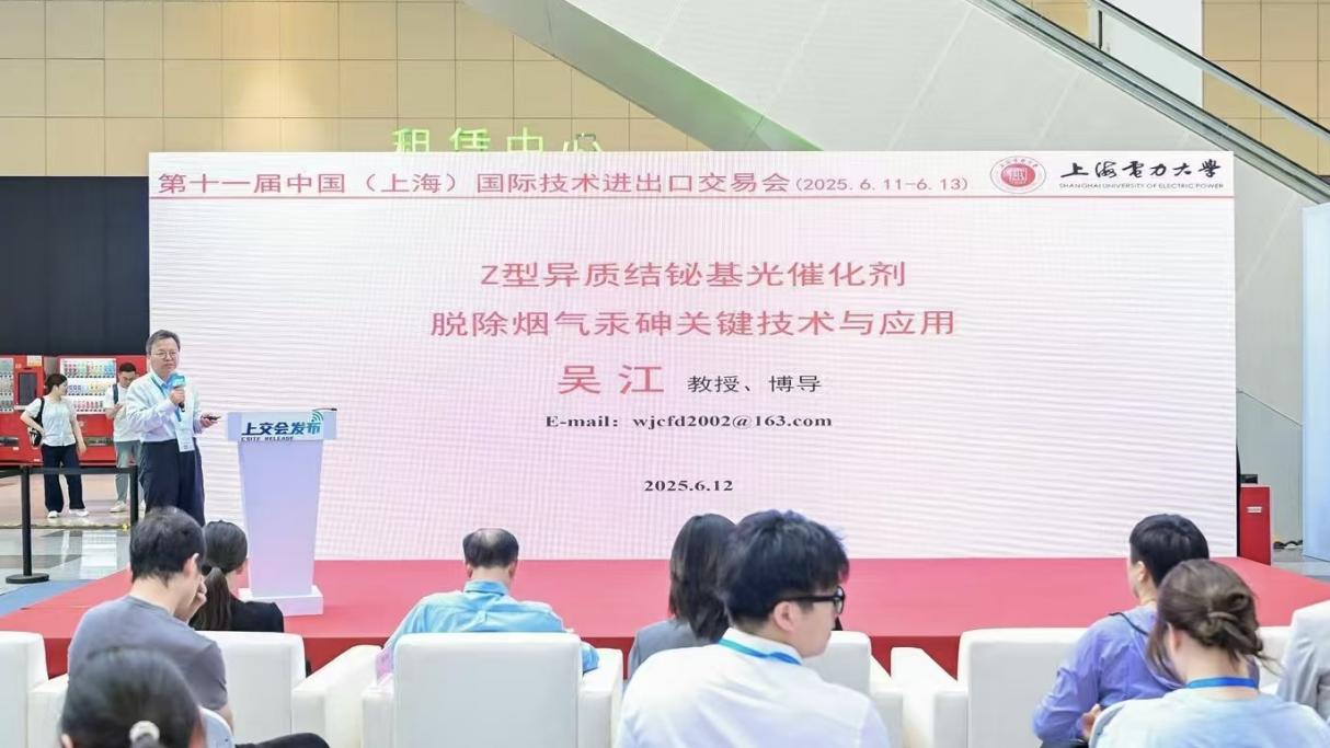 吴江老师团队的“Z型异质结铋基光催化剂脱除烟气汞砷关键技术与应用”项目,创新性开发了基于铋基材料的光催化脱汞技术与光催化脱砷技术,可集成于现有烟气净化系统,协同脱硫脱硝设备使用。该项目获得本届上交会“绿色能源与储运先进项目奖”。