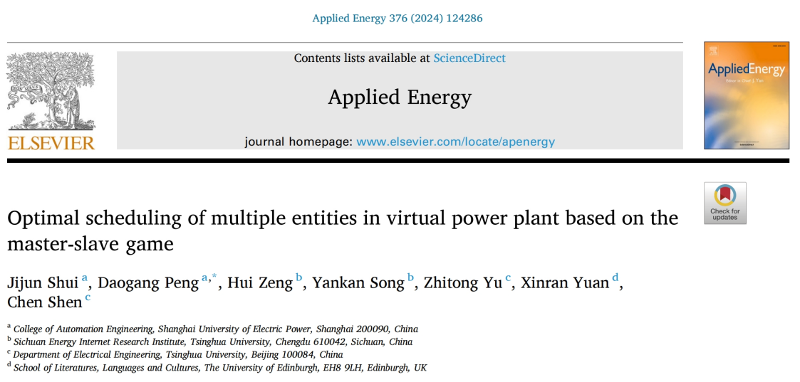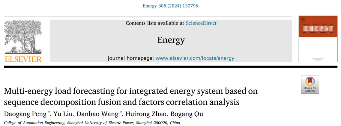近期,自动化工程学院由彭道刚教授领衔,赵慧荣副教授、渠博岗讲师等为骨干的研究团队指导博士和硕士研究生在综合能源与虚拟电厂方面的研究工作取得重要进展,相关研究成果在2024年底以第一单位和第一作者/通信作者在《Applied Energy》(IF:10.1)、《Energy Conversion and Management》(IF:9.9)、《Renewable Energy》(IF:9.0)以及《Energy》(IF:9.0)等能源领域中科院一区Top期刊发表学术论文多篇。