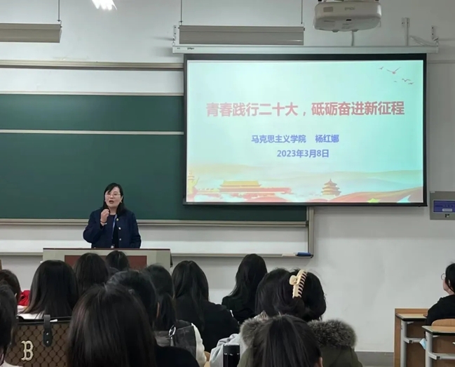 2021年,学校启动优秀教师转任思政课教师工作,杨红娜老师转岗到马克思主义学院,成为思想道德与法治教研室的一名专业课教师。
