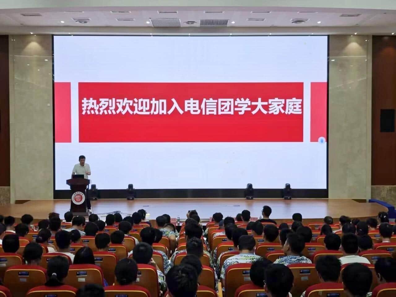 为使大一新生深入了解学院学生工作和团学各部门的职责定位与核心理念,近日,电信学院2025级新生入学教育之“走进团学”暨纳新宣讲会在学术楼117报告厅举行。电信学院团委书记李天成、团委挂职副书记李骁、团学书记班子主席团、团委学生会部门负责人及300余名新生参会。