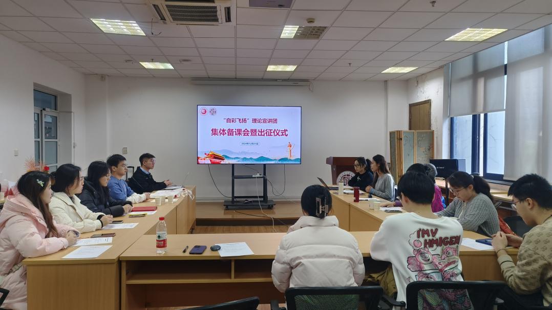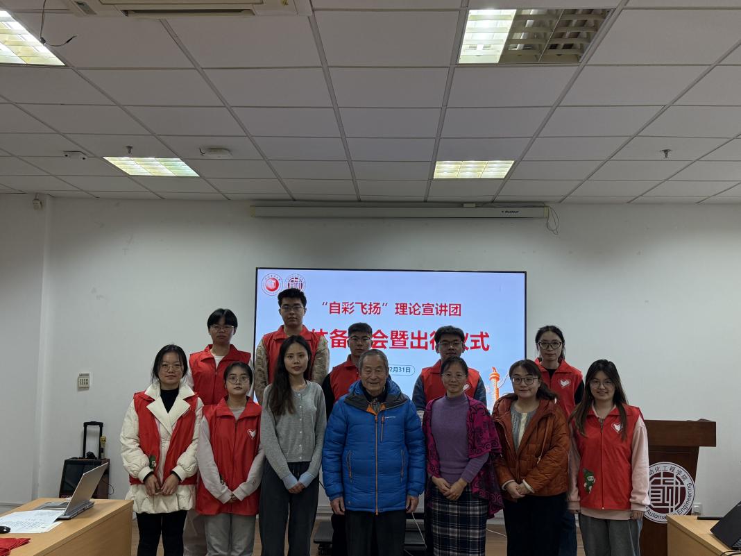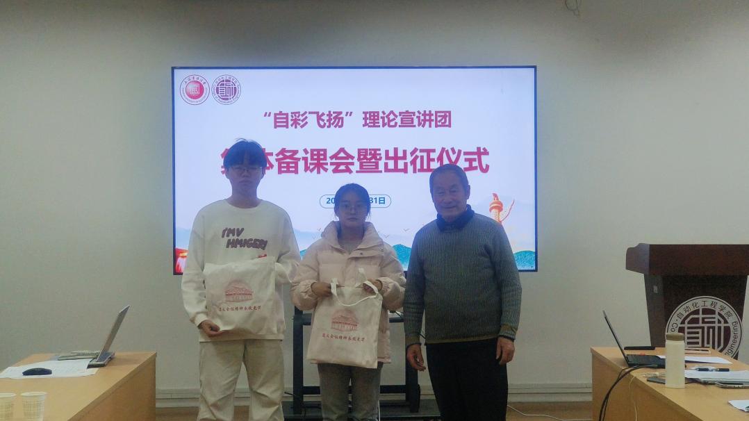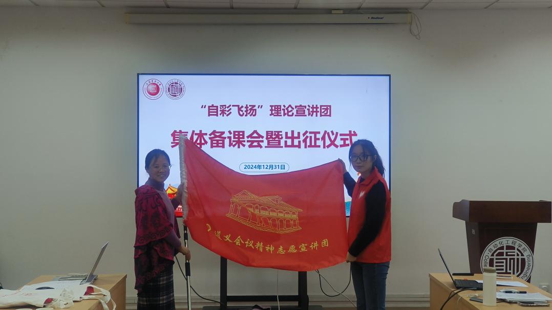 为深入学习贯彻习近平新时代中国特色社会主义思想,贯彻落实党的二十届三中全会精神,着力提升宣讲团宣讲水平,近日,自动化工程学院“自彩飞扬”理论宣讲团召开2024-2025学年秋季学期集体备课会暨2024年全国大学生遵义会议精神志愿宣讲出征仪式。本次活动特邀校关工委秘书长庄民生作培训指导,学院党委副书记王佳丽、团委书记侯林、指导教师孙怀芹、“自彩飞扬”理论宣讲团全体成员出席会议。会议由孙怀芹主持。