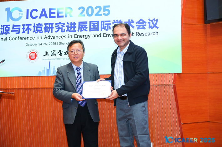 第十届能源与环境研究进展国际学术会议(ICAEER 2025)于10月24日至25日在我校以线上线下相结合的方式召开。本次会议由我校主办,能源与机械工程学院以及上海市IV类高峰学科上海非碳基能源转换与利用研究院联合承办,安徽工业大学、中国动力工程学会与上海市能源研究会联合协办。会议聚集了来自英国、澳大利亚、马来西亚、伊朗和中国的近300名专家学者,围绕能源与环境主题进行了精彩的分享和热烈的探讨。